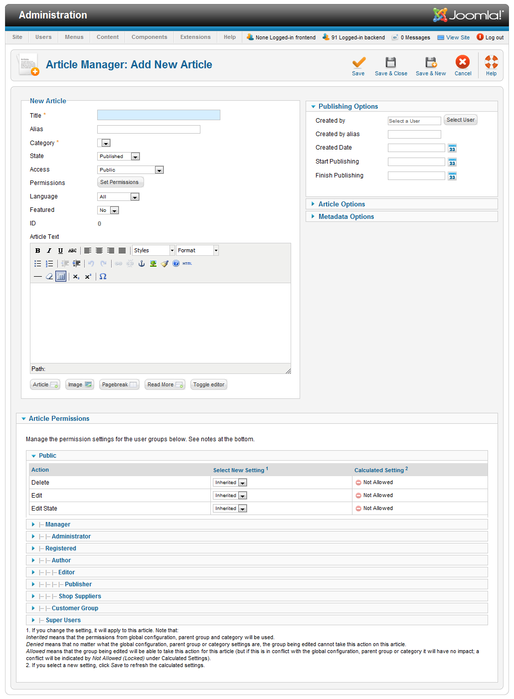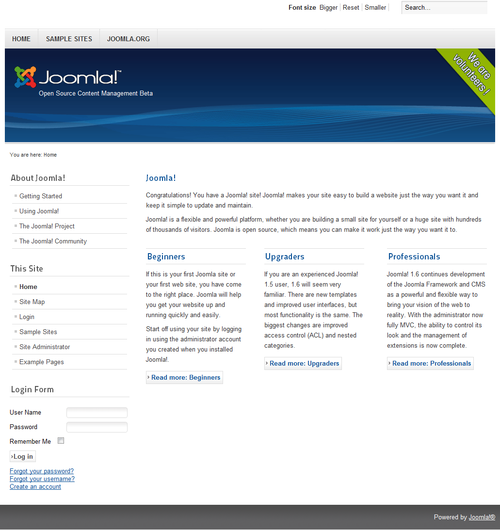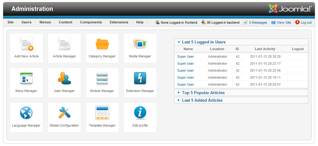 Jako, że kilka dni temu miała miejsce premiera nowej wersji CMS Joomla o numerze seryjnym 1.6 postanowiliśmy przygotować dla Was krótką przeprawę przez ulepszone okienka. Polska wersja jest jeszcze w fazie tłumaczenia, lecz na dniach powinna już ujrzeć światło dzienne. Na dzień dzisiejszy migracja do Joomla 1.6 nie jest jeszcze zalecana. Zbyt mało powstało modułów do nowej wersji, a stare mogą działać niepoprawnie. Na bieżąco będziemy informować o kolejnych zmianach i nowościach. Tymczasem zachęcamy do zapoznania się z poniższym zbiorem.