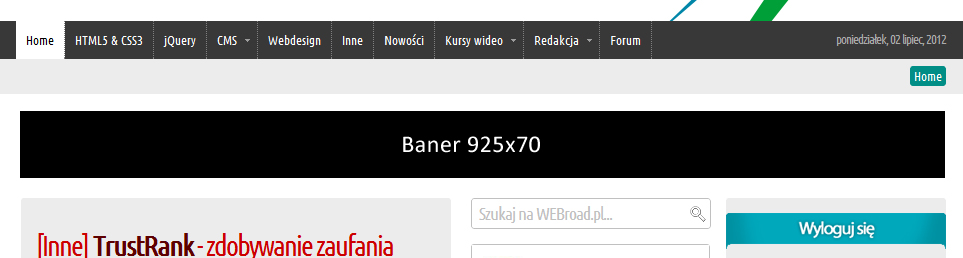 Na wortalu WEBroad.pl preferuję kilka standardowych form reklamy. Jeżeli Twoja firma potrzebuje spersonalizowanej formy promowania, możliwe jest przygotowanie reklamy pod specjalne wymagania klienta (w takim wypadku proszę uprzednio skontaktować się ze mną korzystając z formularza).
