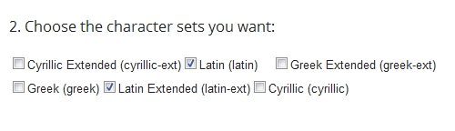 KROK 2. Zaznaczamy listę potrzebnych znaków (Polskie znajdują się w Latin Extended)