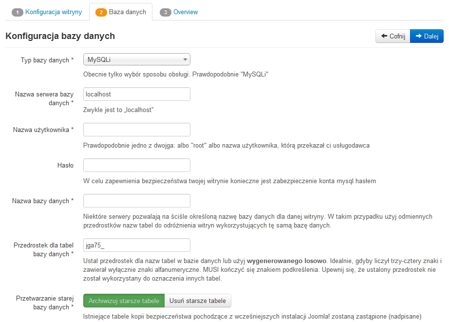 Dalej wypełniamy informacje o naszej bazie danych. Myślę, że omawianie jest zbędne.