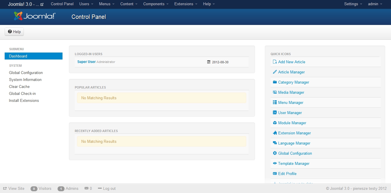 Przyznam szczerze, że zupełnie zapomniałem o wydanej 16. sierpnia Joomla! 3.0 Alpha-2. Wszystko odbyło się bez większego echa, pomimo tego, że właśnie od tej wersji został wprowadzony nowy interfejs, starannie przygotowywany od dłuższego już czasu. Pędzony głównie ciekawością (choć miałem wcześniej do czynienia z pokazowymi wersjami) postanowiłem zainstalować „trójkę” i podzielić się z Wami swoimi spostrzeżeniami.
