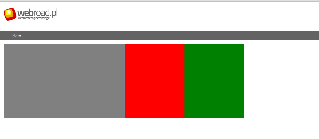 Interesować nas powinny głównie kolumny, menu i logo. Na razie nie mamy wsparcia dla różnych rozdzielczości. Strona wyświetla się identycznie dla kazdego rozmiaru ekranu. Oto uzyskany efekt.