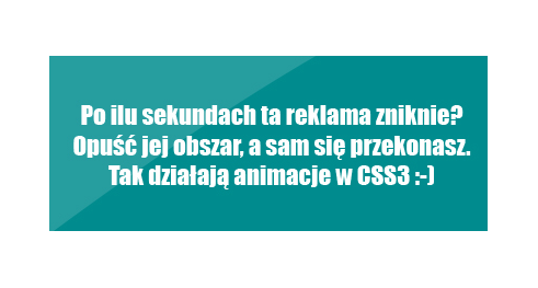 Jak już bardzo dobrze wiemy, nowe możliwości, jakie daje nam CSS3 są naprawdę ogromne. Nie ma sensu jednak uczyć się wszystkiego jedynie w teorii, bo przecież najlepszym sposobem na ujażmienie nieznanego, jest właśnie jego poznanie. Dzisiejszy wpis poświęcę na omówienie przykładu, w którym blok reklamowy wyświetlać się będzie dopiero po najechaniu na niego kursorem na ekranie, jednak zniknie dopiero po kilku sekundach od opuszczenia danego obszaru. Zapraszam Was do dalszej lektury.