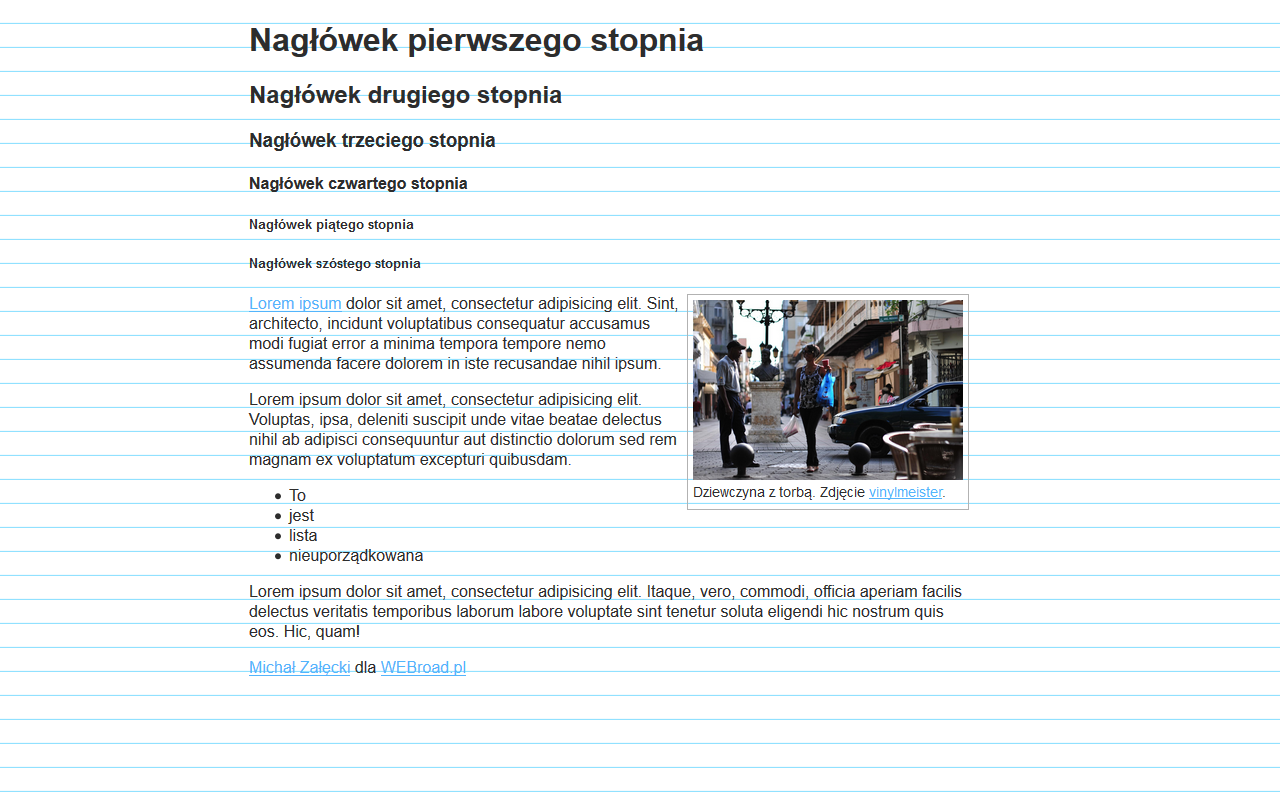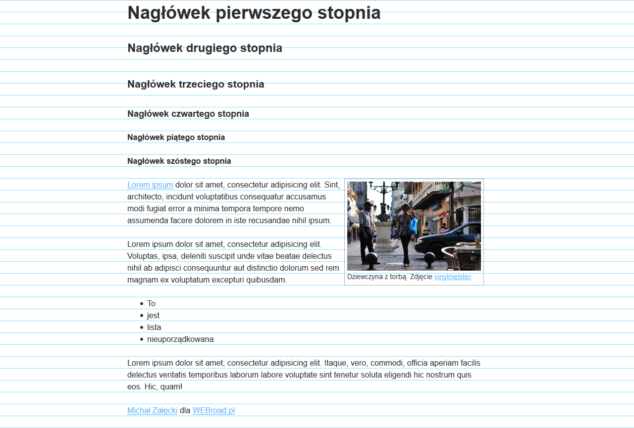 Pozostałe elementu możemy dostosować do naszych potrzeb w sposób analogiczny jak w przypadku nagłówków.