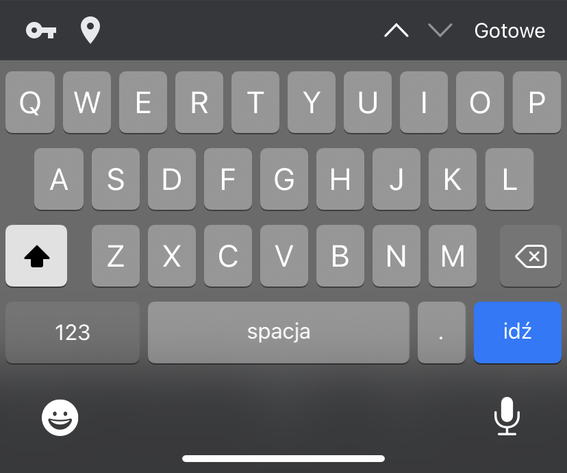 Klawiatura tekstowa, lecz zamiast przycisku nowej linii mamy tu przycisk akcji, który wysyła formularz wyszukiwania.