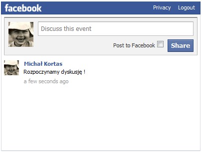 Facebook’owy system komentarzy. Dzięki niemu pozwalamy internautom komentować oglądaną przez nich treść. Ciekawe i przydatne. Daje możliwość umieszczania wpisów na tablicy. Do umieszczenia tylko przy pomocy XFBML. Link do pobrania biblioteki SDK znajduje się na końcu artykułu.