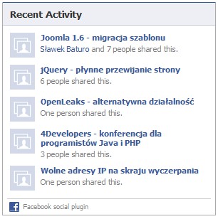 Umieszczając ten komponent dostajemy okienko, dzięki któremu na stronie widnieje lista ostatnich aktywności, przypisanych do danej domeny. Narzędzie to jest raczej mało przydatne, jednak szeroko wykorzystywane.
