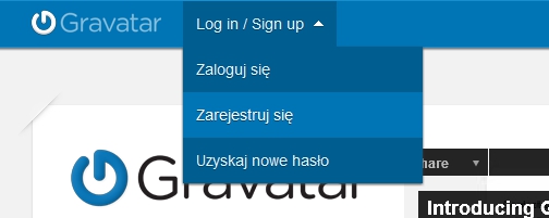 Aby rozpocząć swoją przygodę z Gravatarem odwiedźmy stronę www.pl.gravatar.com. Z menu wybieramy pozycję ’zarejestruj się’.