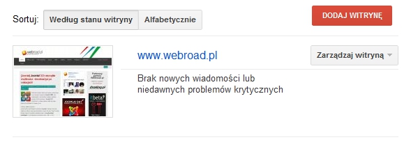W tym celu odwiedzamy witrynę z narzędziami Google dla webmasterów i wybieramy naszą witrynę.