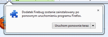 Po ponownym jej włączeniu, w górnym prawym rogu pojawi się nowa ikonka. Jest to własnie skrót do opcji Firebug’a.