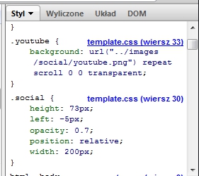 Granatowym kolorem wypisana jest nazwa arkusza stylów i numer linijki, w której znajduje się dany fragment. Teraz znalezienie go i sama edycja nie jest niczym trudnym.