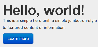1 2 3 4 5 6 7 8 9 10 11 12 13 | <!DOCTYPE html> <html> <head> <title>Bootstrap 101 Template</title> <!-- Bootstrap --> <link href="css/bootstrap.min.css" rel="stylesheet" media="screen"> </head> <body> <h1>Hello, world!</h1> <script src="http://code.jquery.com/jquery-latest.js"></script> <script src="js/bootstrap.min.js"></script> </body> </html> |