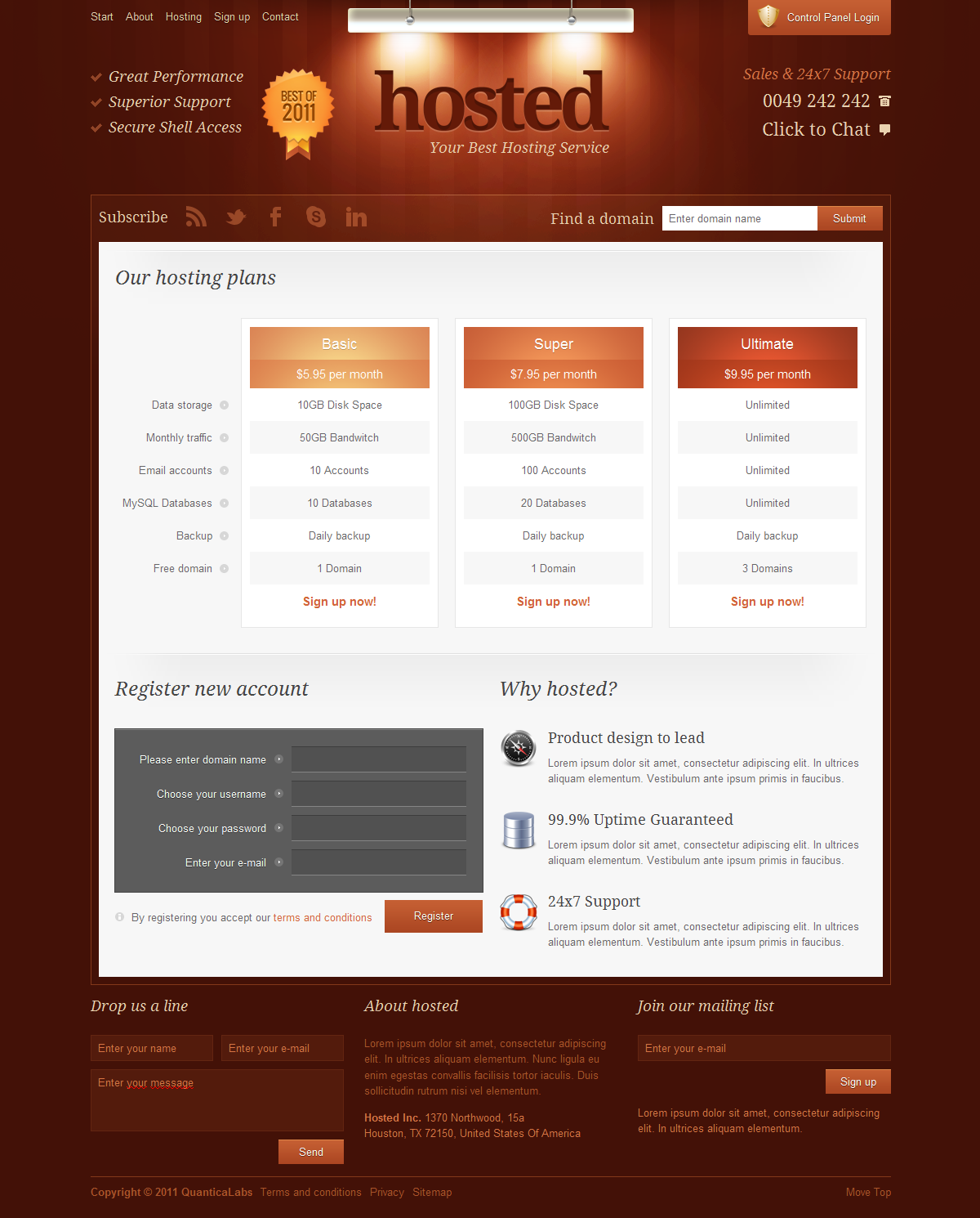 Wykonanie szablonu jest bardzo profesjonalne. Nadaje się on głównie do wykorzystania jako strona dostawcy hostingowego.