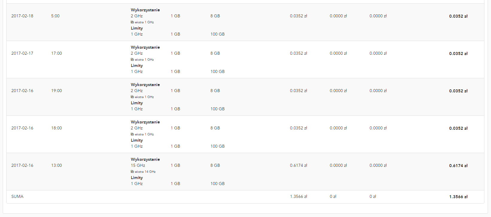 Zrobiłem jeszcze zrzut z raportu finansowego, po obciążeniu mojego konta dodatkowymi kosztami przy zwiększonym obciążeniu. Jego skrawek znajduje się poniżej.
