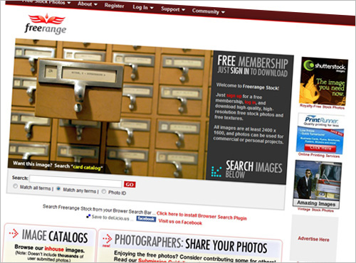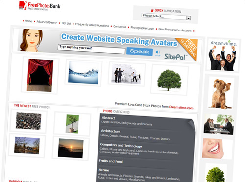 Najlepszy, wg mnie, serwis tego typu. Ma do zaoferowania ogromną liczbę zdjęć i grafik (aktualnie prawie 400 000), wykonanych przez osoby z całego świata. Aby pobierać zdjęcia w dużej rozdzielczości, wystarczy założyć konto użytkownika.
