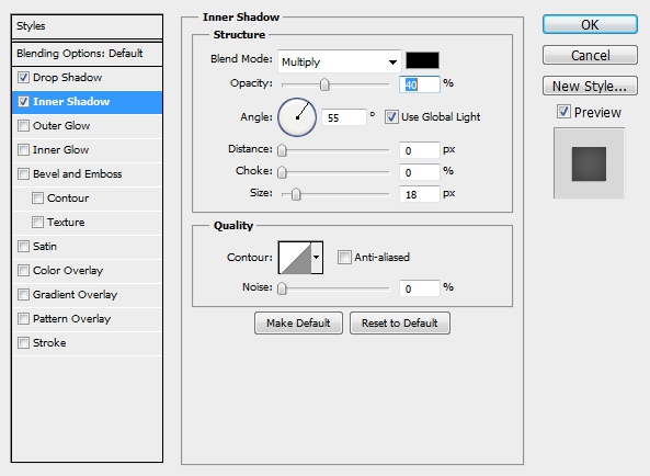 Tak samo włączamy też cień wewnętrzny, z poniższymi opcjami.
