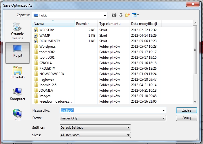 Upewnijmy się, ze zapisujemy pliki jako PNG-24 z przezroczystym tłem.