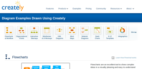 Creately jest narzędziem, które zostało stworzone nie tylko z myślą o tworzeniu makiet, ale również diagramów, czy wykresów UML. Oczywiście w każdym innym narzędziu do tworzenia makiet również możemy stworzyć tzw. flow chart, ale o ile jest to łatwiejsze kiedy ma się moduł aplikacji stworzony z myślą o tym by udostępnić nam taką możliwość?